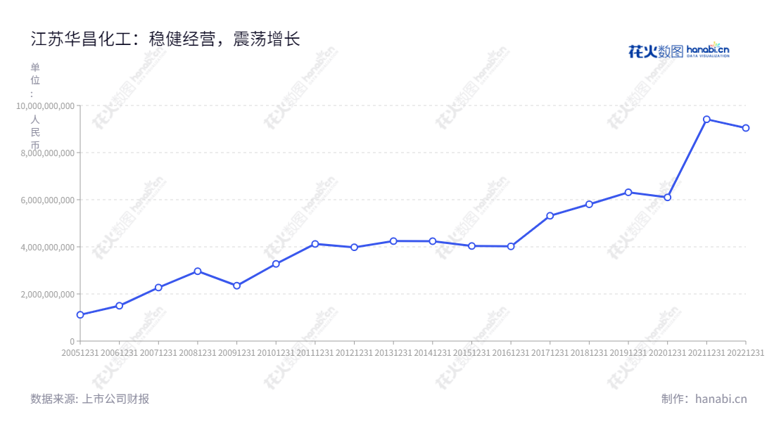 江苏华昌化工股份有限公司(Jiangsu Huachang Chemical Co., Ltd.)是江苏省人民政府苏政复文件批准的一家新成立的煤化工企业,总部位于苏州市,董事长兼总经理胡波和张汉卿担任公司领导,至今已有近17年的历程,其营业总收入从2012年的3981070714.46增长至2022年的9044973399.49元,可见该公司具有非常稳健良好的经营能力。从收入报表可以看出,江苏华昌化工股份有限公司多年来实现了稳定的经营增长,在2018年营业总收入达到5806171818.37元,比2012年的营业总收入增长了约48.33%;而2020年的营业总收入比前一年增长了52.13%,达到6099322689.21元,证明公司经营运营效率的同时,公司能够在当下市场震荡不定的情况下仍能实现稳健增长。随着新兴行业的不断发展,江苏华昌化工股份有限公司也会继续发展壮大,不断创新,实现更高的收入和增长,争取取得更大的业绩表现。未来,公司将继续加强内部管理,开发更多的市场渠道,吸引更多的投资人,目标是建立一个更完善的、更有竞争力的企业文化。
