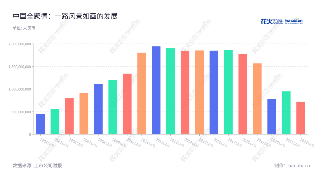中国全聚德(集团)股份有限公司(以下简称全聚德)成立于1993年,主营业务为餐饮服务及食品加工销售等。从最近的2022年到2012年,全聚德营业总收入逐年增长,从1.94亿猛增至7.19亿。从这一发展趋势来看,随着市场的发展,全聚德也愈加完善了经营管理机制、拓展了业务线,取得了良好的发展成果。全聚德的发展不仅是业绩的增长,它也注重完善募集等活动,与周边餐饮服务地区紧密联系,增加了消费者的选择范围,从而进一步加强了公司的实力。除此之外,全聚德还抓住了信息时代的浪潮,将官网、微信公众号、网站等电子媒体运用出色,以时尚前卫的标准向客户提供优质服务。未来,全聚德将继续走在烤鸭行业的领先地位,继续与社会文化地区保持紧密联系,从而深化消费者体验。同时,扩大新兴市场,丰富品牌行业经营领域,提升了全聚德品牌影响力。至此,可以看到从2012年到2022年,全聚德一路风景如画的发展历程,从原木头桌上到今日食客的表演舞台,取得了众多优秀的成绩。未来,全聚德将持续展开新的探索和尝试,为客户带来更多美好体验,用烤鸭把中国的历史文化传承下