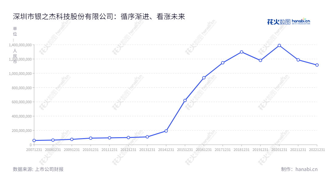 深圳市银之杰科技股份有限公司(300085)自2007年诞生以来,步履稳健,坚定而有力地开拓发展新路径。以金融信息化、移动信息服务、电子商务为主营业务,专注于信用卡、移动支付等行业,持续投入创新技术发展等方向,致力于为客户提供全方位的解决方案和产品服务,不断发展和优化其业务模式。从2013年至今,公司营业总收入稳定增长,从2013年11.01亿元增长至2021年11.88亿元,增长了10倍多,营业总收入增幅显著。2020年度,营业总收入高达139.05亿元,较上年度增长11.07%,营业总收入增幅同比明显,且连续八年的增幅均在10%以上,证明了公司稳健的发展势头。此次,深圳市银之杰科技股份有限公司(300085)经历了八年的高速发展,一路循序渐进,不断壮大,令投资者看涨未来,期待着更多的成就和发展,打造一个更有活力、更有成就感的未来。