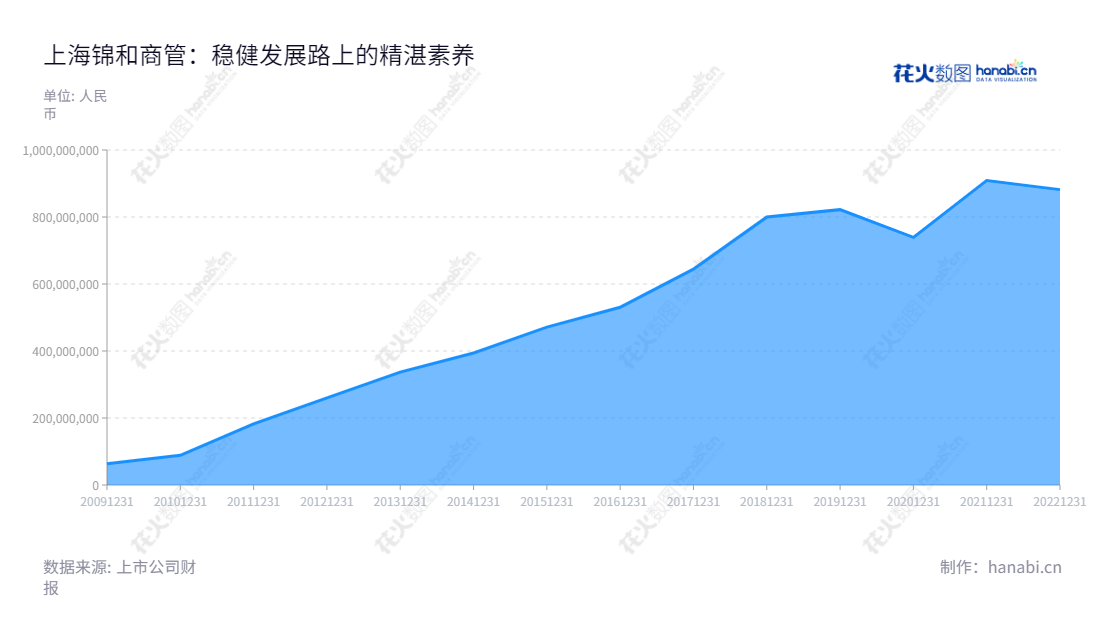 上海锦和商管(603682),于2013年在上海注册,是一家提供产业园区、创意产业园区定位设计、改造和运营管理的公司,董事长郁敏珺,总经理也是郁敏珺,其网址为www.iyuejie.com。从公司的营业总收入来说,一路从2013年的33亿元不断发展,到2022年的8.817亿元,上海锦和商管以稳健可持续的增长发展成果为证,充分说明了管理层在经营管理上采取的正确战略逻辑。尤其在2020年疫情来袭、经济形势下行的对比之下,公司的营收同比仍然保持增长,管理层的忧患意识更是可圈可点。公司在产品研发和品牌维护上也很有实力,不仅投入技术创新,还了自身在集合物体规划、体系化运作上的特殊技术,如此郑重的制度基础、科学的规划方案以及深入的系统管理,将确保公司在竞争当中的领先地位,同时为公司可持续发展打下坚实的基石,为公司未来持续稳健的发展打下坚实的基础。上海锦和商管公司稳健发展路上似乎显示出精湛的素养,它不仅是把公司发展之路走向稳定,更将公司的产品和品牌提升到一个新的水准,从而在经济危机、技术变革、市场波动时,能够为公司撑起把持的大旗,并引领其前行
