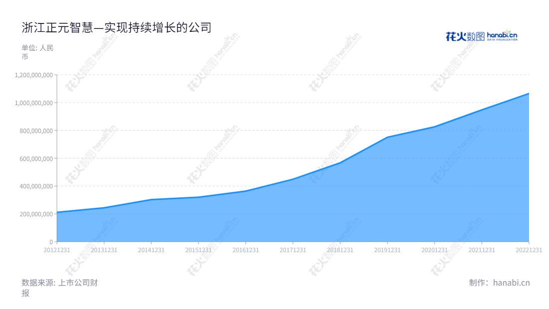 浙江正元智慧科技股份有限公司(Zhejiang Zhengyuan Zhihui Technology Co., Ltd.)是一家以智慧一卡通系统的设计、开发、生产、销售、服务及运营为主营业务,以陈坚为董事长兼总经理的正元智慧,在杭州一直保持着良好的发展前景。通过对前述的营收报表可以看出,从2012年至2022年,公司营收逐年总体呈现上升趋势,2022年公司营收达到了1065042890.31元,其10年营收增幅超过50%,显示了浙江正元智慧科技股份有限公司稳健而持续的发展步伐。经过不断创新与发展的努力,浙江正元智慧科技股份有限公司已经不断积累了一些核心的自主知识产权,为公司的未来持续发展奠定了坚实的基础。此外,浙江正元智慧科技股份有限公司也注重品牌建设,一直坚持正直公正的价值理念,积极履行公民责任,同时不断拓展业务,在全国范围成功扩张业务,开拓更广阔的市场。回顾过去十年的发展历程,浙江正元智慧科技股份有限公司一直展现出强劲的发展势头,从2013年的243393400.00元,到2022年的1065042890.31元,增长了超过4倍,未来有望推动公司继续获得更好的发展。