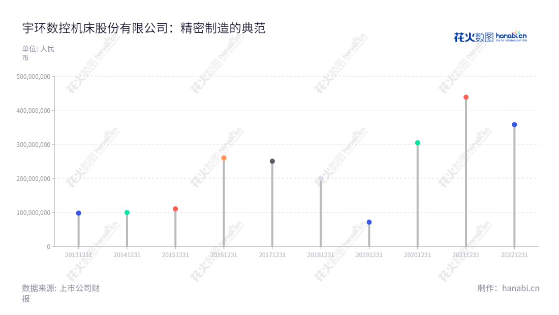 宇环数控机床股份有限公司(Yuhuan CNC Machine Tool Co., Ltd.)主要业务为数控磨削设备及智能装备的研发、生产、销售与服务。从2013年至2022年的营业总收入数据来看,公司整体营收呈现出平稳蓝筹的良好走势。其中,从2017年至2022年,公司整体营收出现加速度,净利润以持续增长的态势向好,跑赢了同期股指的涨跌历程,表明公司经营情况相对良好。宇环数控机床股份有限公司秉拗将客户满意度放在首位,提供最优质的综合解决方案,为客户量身定制可行的技术解决方案。在不断研发和创新的支持下,公司孕育并实现了多个综合解题软硬件产品组合,推动机床装备朝新一轮高品质、高效率和智能化发展。以及多款典型成套机械产品,满足客户生产制造的实际需求,经营成果显著。宇环数控机床股份有限公司凭借执着的研发实力,