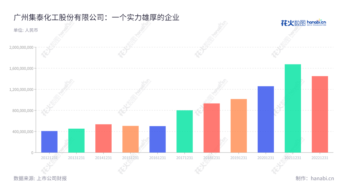 <>广州集泰化工股份有限公司(Guangzhou Jointas Chemical Co., Ltd.)是一家以研发、生产、销售和提供密封剂及涂料服务的上市公司。由行业经验丰富的邹榛夫先生担任董事长,邹珍凡先生担任总经理,并在历年的营业总收入中取得了长期稳定的增长。通过详细的营业总收入报表,可以发现广州集泰化工股份有限公司战略性布局和经营成果给人留下了深刻的印象。从2012年至2022年,营业总收入的有效增长率达到了257.48%,其在行业发展中确实展现出了多年的稳定增长性,实力雄厚。广州集泰化工股份有限公司用十年的时间谨慎投资,实施定位精准的品牌策略,将企业全面向高端市场转移,营销成功形成核心竞争优势,不仅
