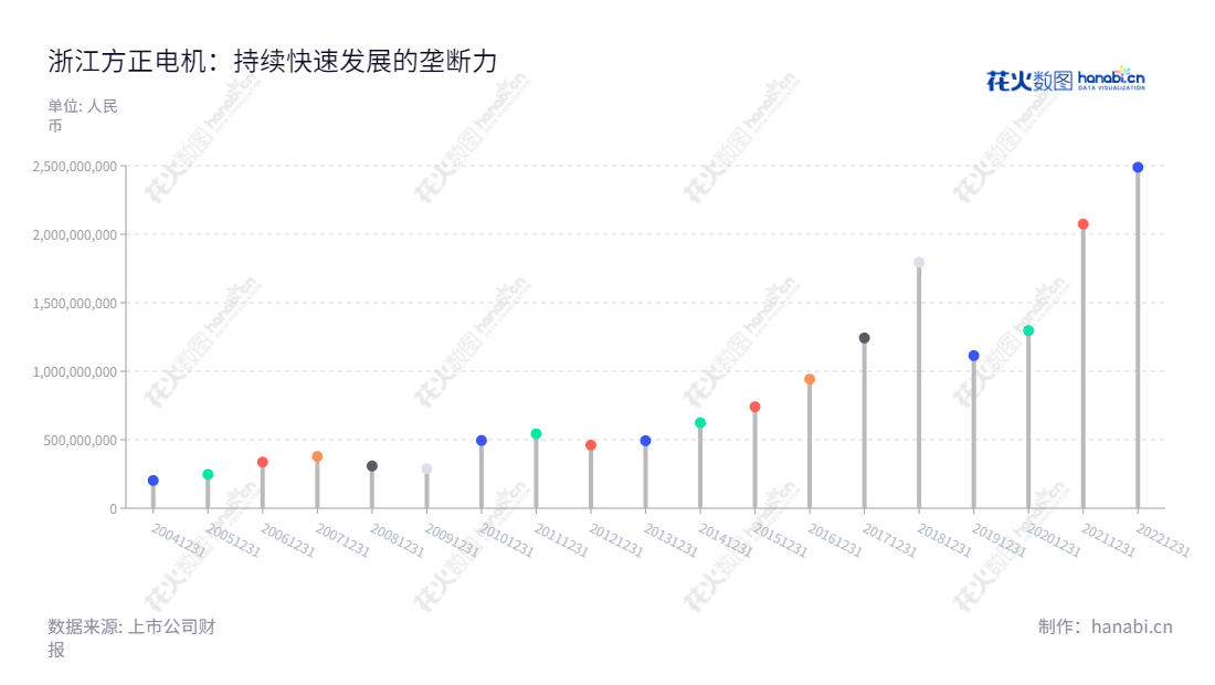 浙江方正电机股份有限公司(Founder Motor Limited Company)是一家以家用缝纫机电机、汽车电机、汽车电子和智能控制器的生产和销售为主业的企业。该公司的营业总成本在2013年至2022年的期间逐年增长,比2013年数据大幅增长了5.3倍,增速较高。另外,该公司利润状况也在不断改善,从2017年开始,毛利率大幅升高,利润总额与归属母公司所有者的净利润呈现出明显的上涨趋势,可见该公司存在良好的垄断优势,正在蓬勃发展。从公司规模上看,该公司已经发展成一家跨越不同行业的大型多领域企业,经营范围覆盖汽车电机、汽车电子,智能控制器以及家用缝纫机电机。此外,该公司已经在国外多个国家和地区市场开拓,实现了跨国运营,成功控制了企业的垄断地位。总而言之,浙江方正电机股份有限公司已经实现了快速而持续的发展,在业界已经形成良好的口碑和规模效应,拥有强大的垄断力,企业的未来发展可期。