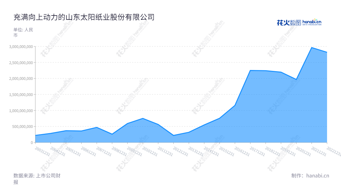 山东太阳纸业股份有限公司是一家位于山东济宁市创立于1983年的民营企业,董事长李洪信和总经理李洪信二人拥有庞大数十亿元的制造产业。这家公司以机制纸、纸制品、木浆、纸板的生产为主,幅员辽阔影响远近。从其净利润来看,太阳纸业的经营情况一路向上发展。从2012年到2022年的十年时间里,净利润大约翻了12倍,从219亿到2817亿,呈现出不可思议的惊人增长势头。由于历史经验的积累,他们不仅有良好的经营状况,而且投资者也能从中获得良好的投资回报。此外,山东太阳纸业股份有限公司将持续向前发展,并将继续实施技术研发以不断提高质量,推出高质量的纸制品。同时,公司建设了一套完善的企业管理体系,充分发挥团队的合作精神和创新能力,以不断提升经营效益。以上是山东太阳纸业股份有限公司的简介以及净利润报表的分析,公司以多年的经营取得了令人称颂的成绩。公司向前看,结合科技进步,创新发展,绝对瞬息万变,激发更加强大的向上动力,迎接更美好的未来!