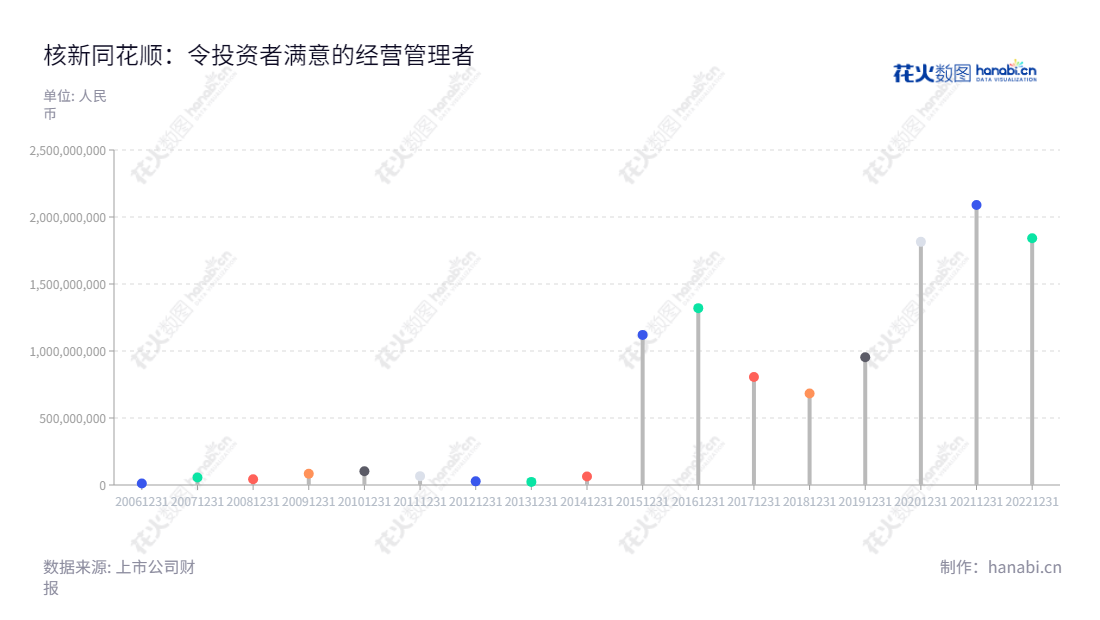 核新同花顺(300033),是一家集软件产品和系统维护服务、金融数据服务、智能推广服务为一体的金融信息服务企业,位于浙江杭州市,由易峥担任董事长和总经理。该公司主要为客户提供软件产品和维护服务,不仅受到各大机构客户的青睐,而且也受到个人投资者的认可,提供金融资讯和投资理财分析工具。从公司的利润总额可以看出,公司实行有效的经营管理,并且取得了良好的经济效益。从2012年到2022年,公司每年的利润都呈上升趋势,其中2018年至2022年的利润增长最快,达到突破1000亿人民币的水平。可见公司的经营管理者在不断地创新经营,实施有效策略,大大提升了公司的经济效益,得到了客户的高度认可和支持。总之,核新同花顺的正确运营管理策略,使本公司取得快速发展与不断的经济效益,使得投资者满意。