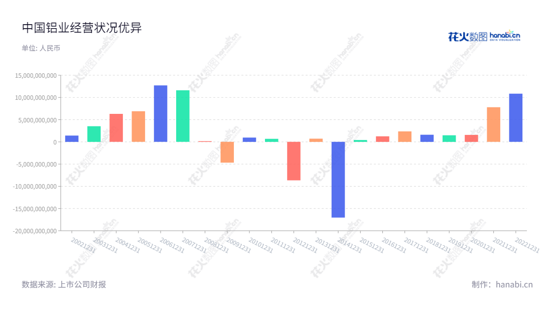 中国铝业股份有限公司(Aluminum Corporation of China Limited)作为中国最大的铝业企业,成立于2002年,总部位于北京,董事长刘建平,总经理朱润洲,致力于铝土矿开采、氧化铝、原铝的生产及销售。2012年至2022年中国铝业的净利润显示其经营情况优异。从2012年至2022年,其净利润都保持在正数水平上,从2012年的8.64亿元,一直到2022年的108.4亿元,增长了12.6倍,保持了持续增长势头。此外,在2017年铝价高涨的情况下,其净利润达到了23.5亿元,相比之前的净利润增长了将近2倍,实现了良好的发展。从2012年的负增长转型到2022年的多位数增长,中国铝业可以说是取得了很多成就和经验。其在行业内的经营技术和管理水平达到了准备可观的水平,因此能够得到持续不断的发展,朝着质量更加优异的方向不断前进。总的来说,中国铝业拥有完善的经营策略,非常优秀的管理水平,可以说是行业里的佼佼者,未来仍有良好发展前景,特别是在中国政府推动新型城镇化的大环境之下,更多的机会竞相呼之欲出。