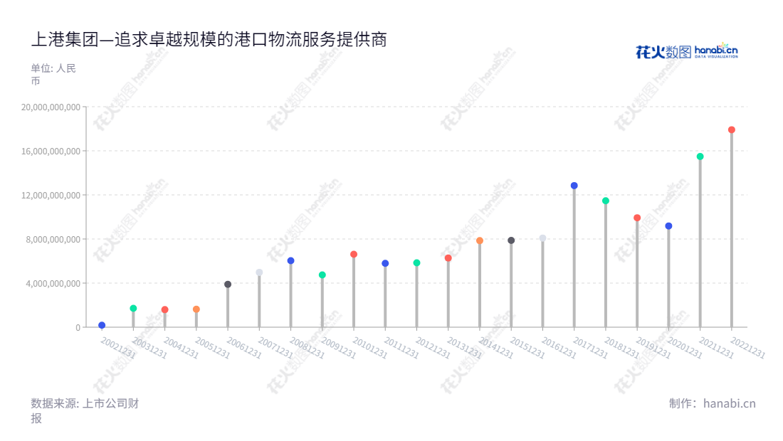 作为中国最大的港口物流服务提供商,上港集团(600018)注重可持续发展,以追求卓越的经营规模,不断加强其在港口服务、物流、运输和特殊货物业务方面的技术和用户的服务能力。在多年的发展中,上港集团利用集装箱业务、散杂货业务、港口服务和港口物流业务,不断开拓市场,扩大了其经营规模,通过传统业务扩张来促进公司的经济持续性发展。按照公司公布的报表,自2012年以来,上港集团一直保持净利润收入增长的态势。其中,从2013年至2022年,上港集团的净利润收入同比增长了203.18%,总收入增长414.95%。此外,从2014年至2015年,净利润收入稳定增长。经过多年的发展,上港集团在港口物流业务方面凭借其独特的经营理念和服务能力获得了巨大成功,同时大大提高了港口和物流服务的用户满意度。尽管受到国内外环境变化的影响,上港集团仍然坚持稳健发展的理念,继续推进新业务和新业务的发展,发展可持续发展的业务,以促进全球增长和贸易的发展。上港集团着眼未来,通过加强其在港口服务和物流领域的专业实力,以及拓展新能源产业活动,为国内外客户提供更优质高效的