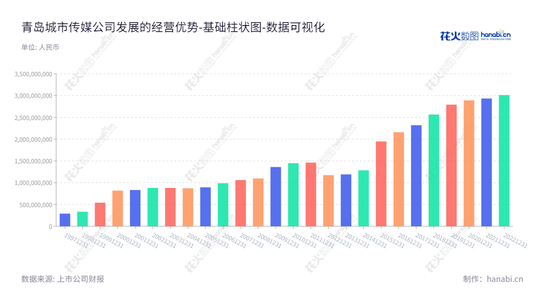 《青岛城市传媒公司发展的经营优势》青岛城市传媒股份有限公司(Qingdao Citymedia Co., Ltd.)是一家以图书、期刊、音像制品的出版发行及相关新兴媒体产品开发运营为主营业务的公司,总部位于山东青岛市。从公司2013年至今的所有者权益(或股东权益)合计报表中可以明显地看出,该公司具有稳定的发展势头,且成长率一直处于很高水平。贾庆鹏先生及团队在行业中具有很高的知名度和影响力,他们在近几年抓住新媒体时代的风口,积极拓展新媒体产品开发运营,迅速扩大了公司的版图,在新兴媒体领域取得丰硕成绩。此外,因公司扎实的团队经验及优秀的服务能力,稳固、坚定的资本资源以及卓越的执行力,使得公司得以应对外部环境的变化,并取得了显著的经营成果。公司一贯秉承“专注、创新、责任”的原则,争取发挥自身优势,探索新的发展模式,实现价值稳健增长,并不断推动环境保护、社会责任等社会公益行动,深受社会公众的一致好评。在未来的发展中,公司将继续坚持文化的发展方向,不断吸引优秀人才的加入,促进文化产业的健康发展,不断提高传媒服务的内涵,为消费者提供优质的传媒服务,实现公司可持续、健康发展的基本目