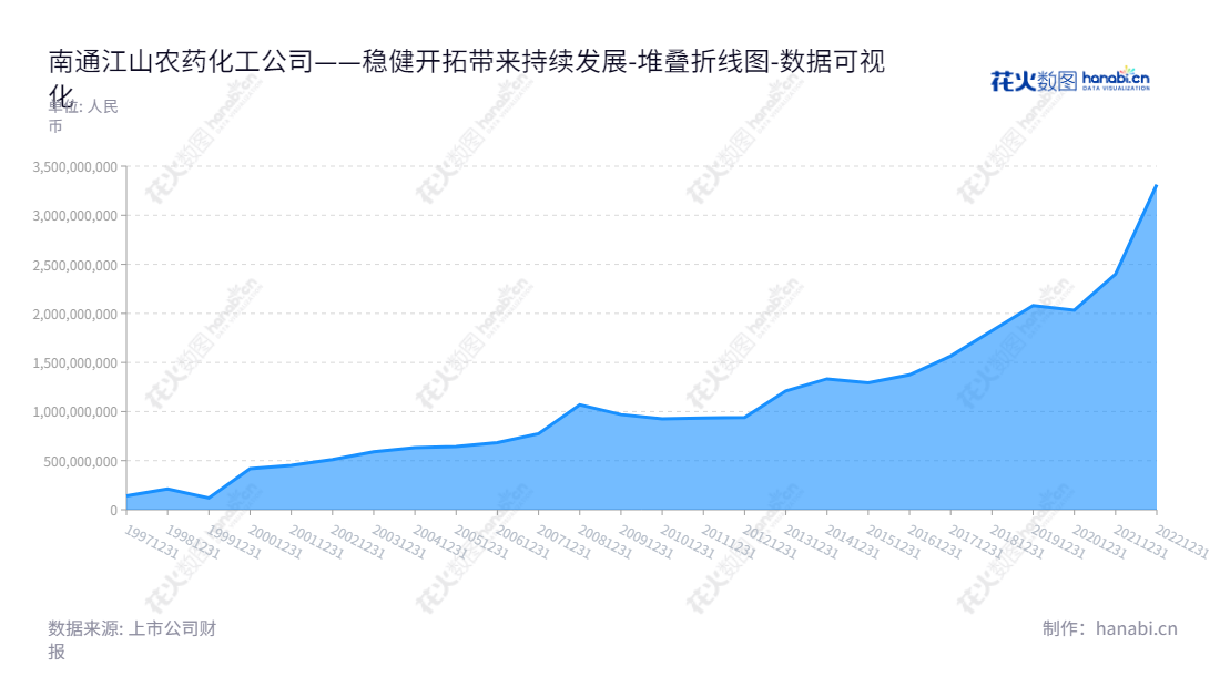 《南通江山农药化工公司——稳健开拓带来持续发展》南通江山农药化工股份有限公司(Nantong Jiangshan Agrochemical and Chemicals Co., Ltd.)位于江苏省的南通市,是一家生产农药及有机化学品、无机化学品、高分子聚合物制造、加工和销售的企业。公司董事长薛健先生和总经理王利女士携手开展稳健可持续的经营发展,已经带来良好的市场效应。从2015年至2022年,南通江山农药化工公司不断发展,其净产值一直保持稳定的增长,所有者权益总额从129.2亿元增加到331.2亿元,确保了企业的健康发展。南通江山农药化工公司有着优质的产品,连续多年被价值发现100强及福布斯全球2000强排行榜认定为重要企业。此外,企业产品还多次获得国家及行业荣誉质量管理认证,赢得客户的信赖与支持。在薛健先生和王利女士的领导下,南通江山农药化工公司不断搜寻新的发展动力,在电子商务及品牌建设等领域做出了不少努力,取得了显著的成效。南通江山农药化工公司不仅致力于市场业绩的稳定提升,还投资于更具前瞻性的领域,以进一步巩固和发展其市场份额,持续拓展新的商机,从而实现可持续发展,实现企业长久的发展目标。