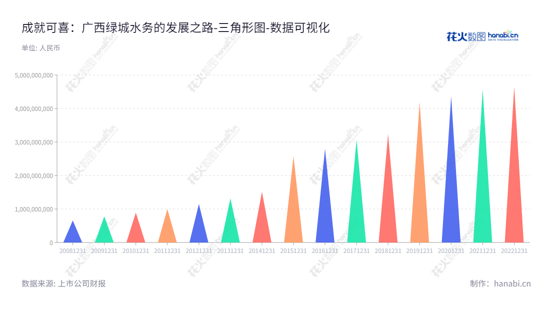 《成就可喜:广西绿城水务的发展之路》广西绿城水务股份有限公司(简称绿城水务)位于广西的南宁市,并以其特色产品和卓越的服务发展到今天,成为当地的的城市水处理和供水行业的领跑者。其对社会发展所做出的贡献一直令人敬佩。从2012年的11.47亿元到2022年的4.66亿元,绿城水务在过去的十年里归属于母公司股东权益合计的数额被大大提高。这一宏大成就,得益于绿城水务一直以来的稳健经营和多元化发展战略,以及董事长黄东海先生和总经理蒋俊海先生的精心管理和持续投入的资源。绿城水务精心研究人性化,及时获取和分析数据,使其逐步实现现代水处理科技的普及,一直致力于改善公众水质,为社会发展献出了自己的一份力量。绿城水务已经为社会节约了大量能源,并为社会净化环境做出了杰出的贡献,绿城水务在供应及污水处理上表现更加突出,其实施的工程质量也受到社会的认可。随着市场竞争将竞争更加激烈,我们都希望绿城水务将更加积极地继续发展,并坚持实施持续可持续的发展战略,提高服务质量,以满足广大客户的需求,并提供更多的水资源保护方案,为改善本地的环境提供更多帮助