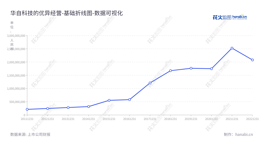 《华自科技的优异经营》华自科技股份有限公司(HNAC Technology Co., Ltd.)位于湖南长沙市,主营业务为水利水电自动化系统、变配电保护及自动化系统、水处理及其它工业自动化系统等的研发、制造、销售及设备安装和技术服务;锂电池测试、膜法水处理业务。通过观察2012年至2022年归属于母公司股东权益合计的走势,可以发现,公司的资产和财务状况一直在稳步上升,在过去10年中有明显的增长趋势。特别值得一提的是,在2020年此项指标上报增长了45.3%,反映出公司在一年间极大的增长。由此可见,华自科技正在采取有效的经营措施,以提升公司的综合竞争力和市场竞争地位。公司的财务构建投资环境得以完善,为公司及客户在研发、制造、销售上取得具有竞争力的经济效益提供了可靠的保证。由此可见,华自科技所采取的财务策略和经营措施取得了显著的成效,为投资者提供了可靠的回报。从以上可以看出,华自科技在实行有效的经营措施的同时,还将重视财务管理的投资,努力实现高效能经营,从而获取有效收益。华自科技能够取得如此优异的业务表现,充分说明其经营管理的精益求精,为投资者的收益提供了有力的保障。