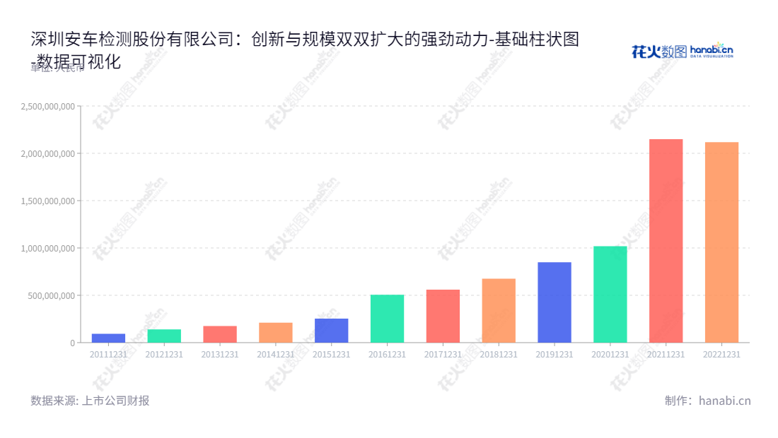 《深圳安车检测股份有限公司:创新与规模双双扩大的强劲动力》深圳安车检测股份有限公司专注于机动车检测领域,成功地将其业务延伸至检测系统和行业联网监管系统,为机动车检测行业提供全面的检测与监管服务。公司董事长贺宪宁先生和总经理贺宪宁先生的强大领导力和出色管理能力,以及公司全体职员的努力和勤奋,帮助公司实现从萌芽到成熟的圆满发展。从2013年至2022年的报表可以看出,这些年来,公司归属于母公司股东权益合计的规模有了显著的扩大。在2013年至2022年的这十年当中,归属于母公司股东权益合计从最初的139251840.16元,增加到2022年的2117256263.56元,增长了15.2倍,展现出了安车检测的强大发展趋势。此外,安车检测也举措在全国范围展开技术创新以及环境检测之类的项目,并聘请有经验的工程技术人员,开发出改进型检测和监管系统,实现跨省市检测及交通安全管理工作,大大提升了整个行业技术水平。不仅如此,安车检测还在不断寻求行业友好合作伙伴,以建立联网的工作环境,并开发新产品以满足客户的需求。总之,深圳安车检测股份有限公司以技术创新为驱动,实现了规模和发展的双重扩大,