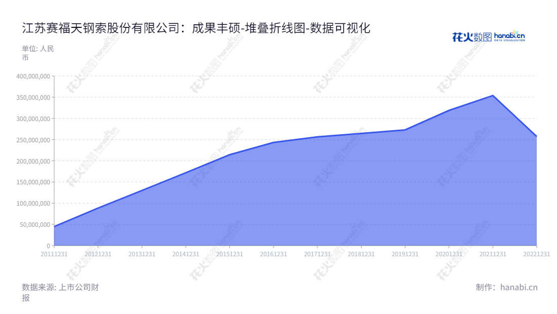 《江苏赛福天钢索股份有限公司:成果丰硕》江苏赛福天钢索股份有限公司是一家生产和销售特种钢丝绳及索具的专业公司。2013年正式注册,总部位于江苏无锡市。作为全国著名钢索索具制造商之一,它已经从一家小公司发展壮大,在行业中取得了不可磨灭的成就。从上述财务报表可以看出,过去八年以来,江苏赛福天钢索股份有限公司的未分配利润不断增长。2012年,其报表中的未分配利润为8.86亿元,而到了2022年,未分配利润增长到25.72亿元,未分配利润累积增长了大约5倍,大大提升了公司的盈利能力。过去八年,赛福天钢索股份有限公司一直在不断壮大,积极寻求市场准入,切实控制成本,坚持不懈地着眼于质量改进,坚持向客户提供优质的服务,并以最优惠的价格保持竞争力。公司将不懈努力,努力提升技术水平,努力建设科学化管理体系,以满足和满足更多客户的需求。江苏赛福天钢索股份有限公司以其出色的业绩和发展前景,这里我们有理由相信,在未来的发展中,江苏赛福天钢索股份有限公司将铸就更多的辉煌。