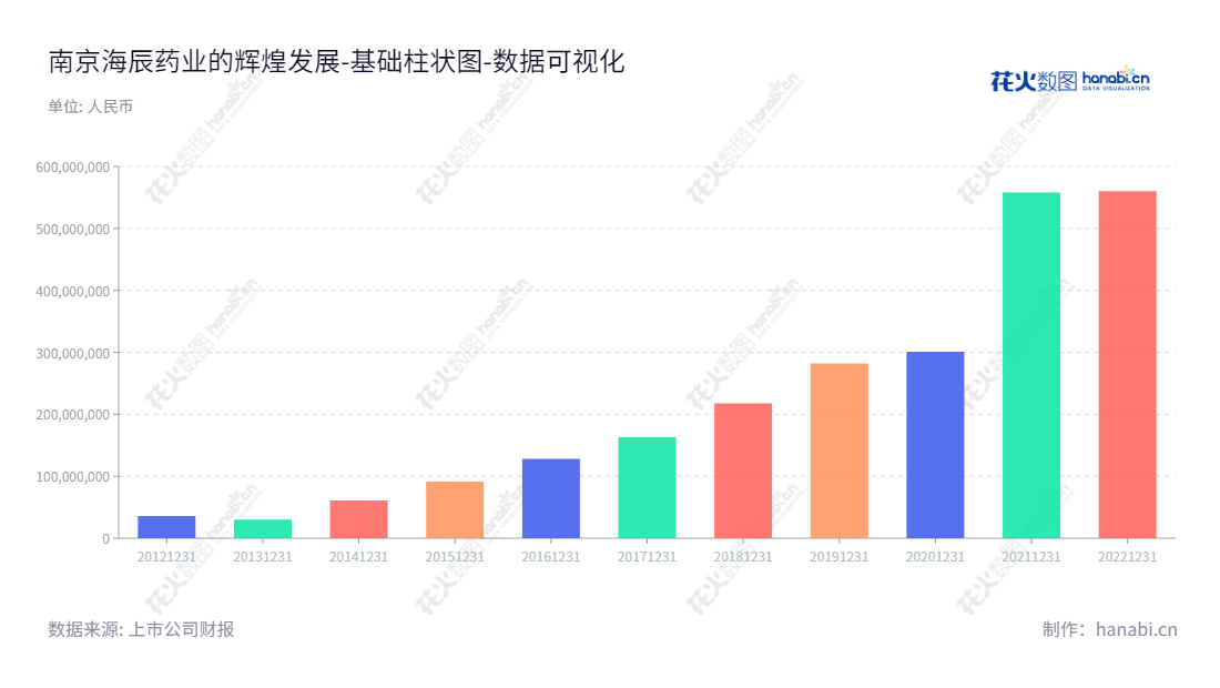 《南京海辰药业的辉煌发展》南京海辰药业股份有限公司(Nanjing Hicin Pharmaceutical Co., Ltd.),由曹于平先生兼任董事长和总经理投资创办,主营化学药品的研发、生产和销售,位于江苏南京市。在公司短短的几年发展历程中,其未分配利润数据显示,2017年至2022年公司未分配利润事实上几乎一直保持稳步增长,由2017年的16,286,904.31元提升到2022年的5,601,735,954.42元,增幅高达35倍,可见公司在投入和管理上的成效,为公司现金流累积做出了不可磨灭的贡献,可以说,南京海辰药业在短短的几年中就取得了辉煌的成就。此外,公司还通过上市,利用资本市场的投融资平台,提升公司形象,实现了上层系统的生存及发展,目前,海辰药业的股价一直处于合理水平,业内知名度提升,拥有了优秀的科研人员和技术骨干,投资者群体也越来越壮大,增强了公司的声誉和品牌形象。总结而言,今后南京海辰药业仍将持续追求卓越,在化学药品的研发、生产和销售领域发挥独特作用,用实际行动不断提升自身实力,打造优势产业和引领行业发展的科技公司模式,实现业绩的良好发展。