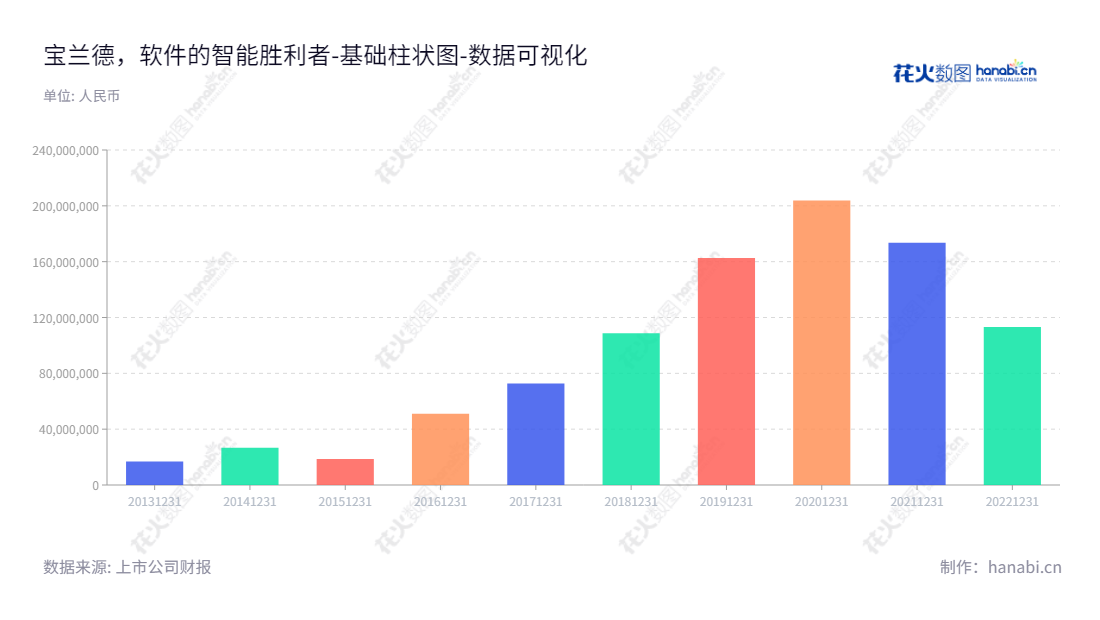 《宝兰德,软件的智能胜利者》北京宝兰德软件股份有限公司是一家致力于基础软件中的中间件软件产品、云管理平台软件、应用性能管理软件等智能运维产品研发及销售和专业技术服务的科技型企业。从未分配利润来看,此公司近几年发展迅速,未分配利润从2013年的1674.6554万增长到2022年的1131.44386亿,大幅增长了六七倍。这在很大程度上说明宝兰德公司经营理念正确,技术不断创新,积极提高产品品质,大大提高了市场竞争力,使公司受到国内外广大客户的青睐。未来,宝兰德公司将继续坚持以创新为导向,提供创新的软件产品和解决方案,为客户以更大的体验和更高的效率,提供智能化的服务。所有宝兰德的员工也将继续以高质量的服务回报客户,为客户提供更好的支持,实现两赢的效果,实现客户的成功。实现自身发展,为我国信息化建设做出更大的贡献。