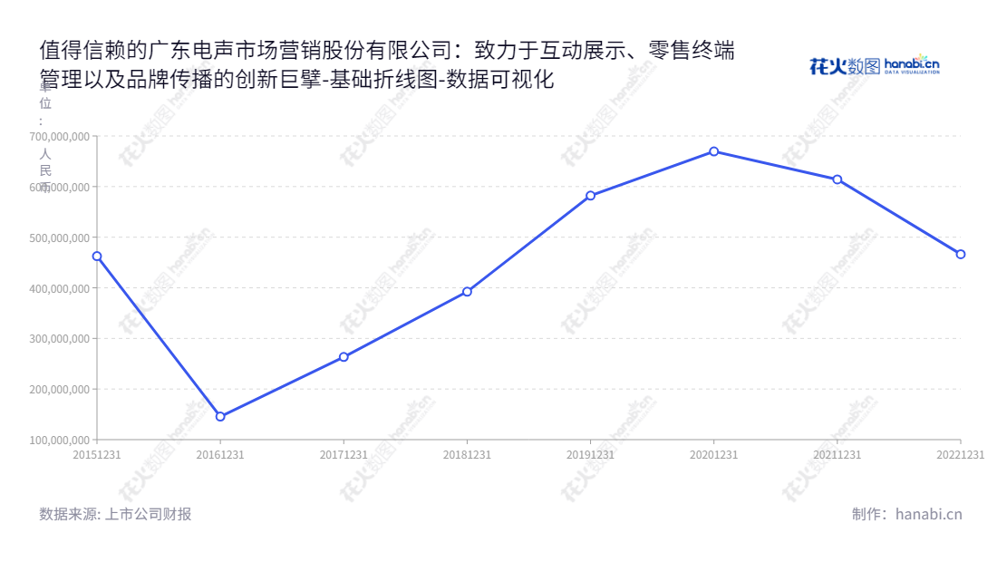 《值得信赖的广东电声市场营销股份有限公司:致力于互动展示、零售终端管理以及品牌传播的创新巨擘》广东电声市场营销股份有限公司(Guangdong Brandmax Marketing Co., Ltd.)成立于2015年,总部位于中国广州,拥有专业的管理团队和一流的技术团队,致力于消费者体验优化、终端整合、品牌与消费者的互动沟通。进入2020年,随着国内消费业的发展,使得该集团的营销服务触及到了更多的消费者、品牌和企业,越来越强大的营销服务体系为该集团获得了大量的利润。根据未分配利润报表来看,从2015年的462531443.25元一直到2022年底的669525434.50元,广东电声市场营销股份有限公司同比增长超过43%,几乎是上升曲线在持续攀升,这说明该公司在市场营销行业的地位与实力还是非常稳健的。广东电声市场营销股份有限公司是一家实力雄厚的企业,他的市场份额一直在上涨,他利用其专业的人才队伍,焕发着市场现代化的活力,使得更多的消费者得以了解和认识到他们的产品及营销服务。同时,该公司还极力将最先进的技术与社会实际结合,为消费者创造更广阔的营销渠道,促进消费者与品牌之间的更好沟通和理解。因此,作为一家致力于互动展示、零售终端管理以及品牌传播的创新巨擘,未