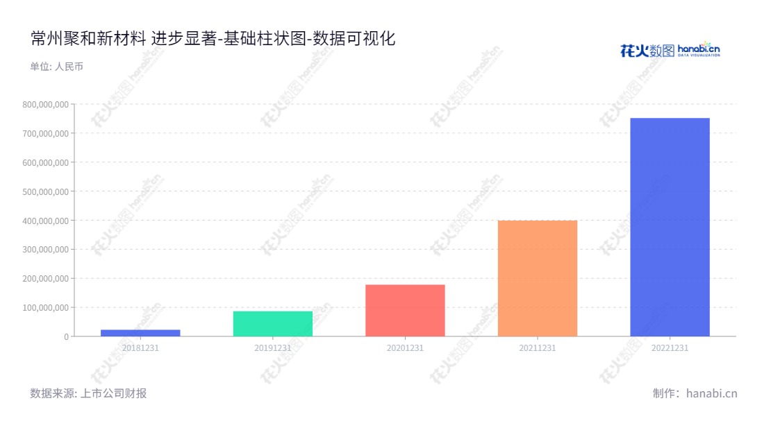 《常州聚和新材料 进步显著》常州聚和新材料股份有限公司(Changzhou Fusion New Material Co., Ltd.)位于江苏常州市,是一家专注于新型电子浆料研发、生产和销售的公司。近几年来,该公司的业绩迅速发展,最近四年中,公司的未分配利润从2018年的2296.66万元增长到2020年的178005.30万元,增长约77倍,引起了广泛关注。在市场竞争日趋激烈的当前,常州聚和新材料股份有限公司在不断发展,实现企业价值,受到社会各界的普遍认可。节省成本,研发创新,发展新技术,生产高质量产品,坚持以客户为中心,提高服务水平,技术改造,短期内帮助公司提高效率,突出企业竞争力。展望未来,针对未来市场发展趋势,常州聚和新材料股份有限公司认真研究分析,依然保持创新精神,不断投入研发新技术,引进新材料,生产出满足客户需求的新技术,不断提高增值服务。总的来说,常州聚和新材料股份有限公司大力发展,保持对市场的敏锐度,不断更新设备和技术,取得了优异的业绩,未来带来了令人期待的机会和前景。