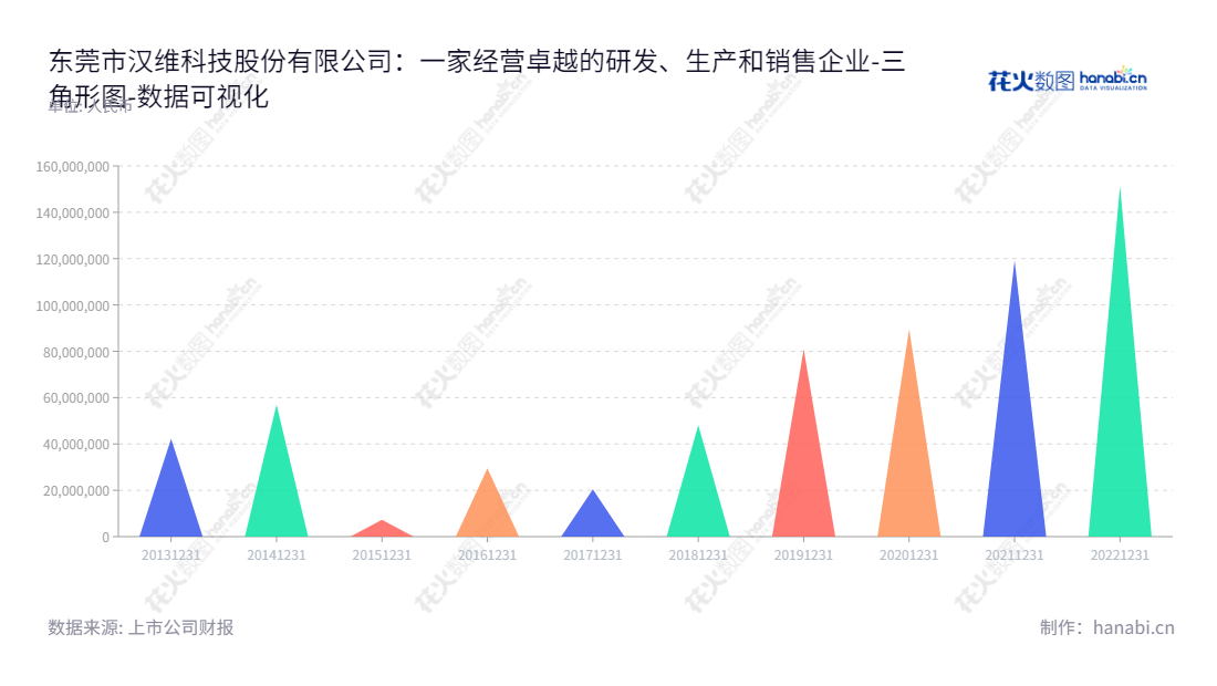 《东莞市汉维科技股份有限公司:一家经营卓越的研发、生产和销售企业》 东莞市汉维科技股份有限公司(Chnv Technology Co., Ltd.)是一家位于广东东莞市的研发、生产和销售高分子材料环保助剂的企业,董事长为周述辉,总经理为周述辉。近几年来,该公司以其具备一流的管理水平、技术水平以及强大的营销能力,开发出独特的产品,赢得了广泛的国内外客户的尊重和认可,同时在控制经营成本和改善净利润方面发挥了良好的效果,未来的发展潜力十分可观。从近年来汉维科技的未分配利润报表来看,2013年到2022年,该公司的未分配利润由2013年的4.2亿元逐年增长至2022年的15.1亿元。从2013年以来,汉维科技每年的未分配利润都大幅高于上一年,连续九年见证了汉维科技在营运方面的良好业绩,未来将会有新的突破。总之,东莞市汉维科技股份有限公司是一家将科学技术回归到实际应用中,经营卓越的研发、生产和销售企业,能够提供客户切实可行的产品和服务,未来依然充满令人期待的发展前景。