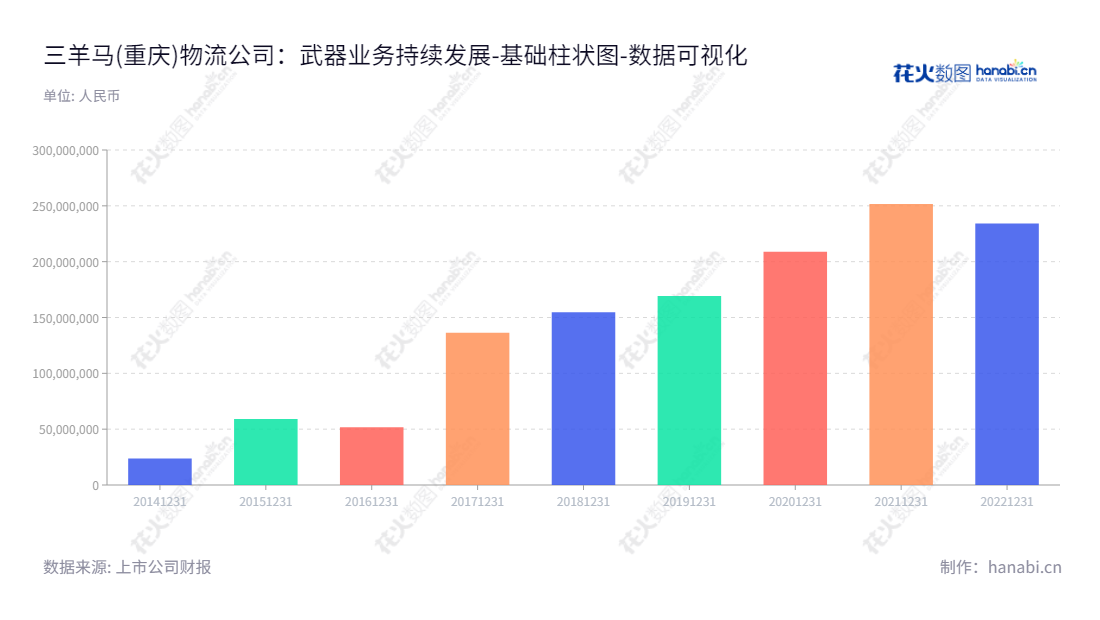 《三羊马(重庆)物流公司:武器业务持续发展》三羊马(重庆)物流股份有限公司,这家在重庆市拥有多年历史的物流公司,一直以提供汽车行业和快速消费品行业综合服务的服务答而闻名。可以从未分配利润的报表中看出,三羊马(重庆)物流公司销售额从2014年的237.98万元,到2020年的25162.71万元,稳定增长了7.3倍,销售额持续增长,有良好的发展前景。三羊马(重庆)物流公司的主要业务是汽车行业和快速消费品行业的综合服务,这些行业的发展前景非常乐观。汽车行业和快速消费品行业日渐发展,而三羊马(重庆)物流公司应运而生,公司能够从这两行业中收获更多的机会,可以最大限度地实现自身运营目标,也促进行业发展。值得一提的是,三羊马(重庆)物流公司拥有创新思维和强大的管理团队,有效提升了公司的经营效率。只有充分地利用公司拥有的优势,才能够保证公司持续发展,保持良好的运行状态。此外,公司拥有一支强大的行政团队,负责技术管理、资金管理、人事管理和其他后勤管理工作,为公司发展提供了关键支持。总之,三羊马(重庆)物流公司在充分了解行业情况的前提下,有效利用了拥有的优势,在过去7年里展现了强