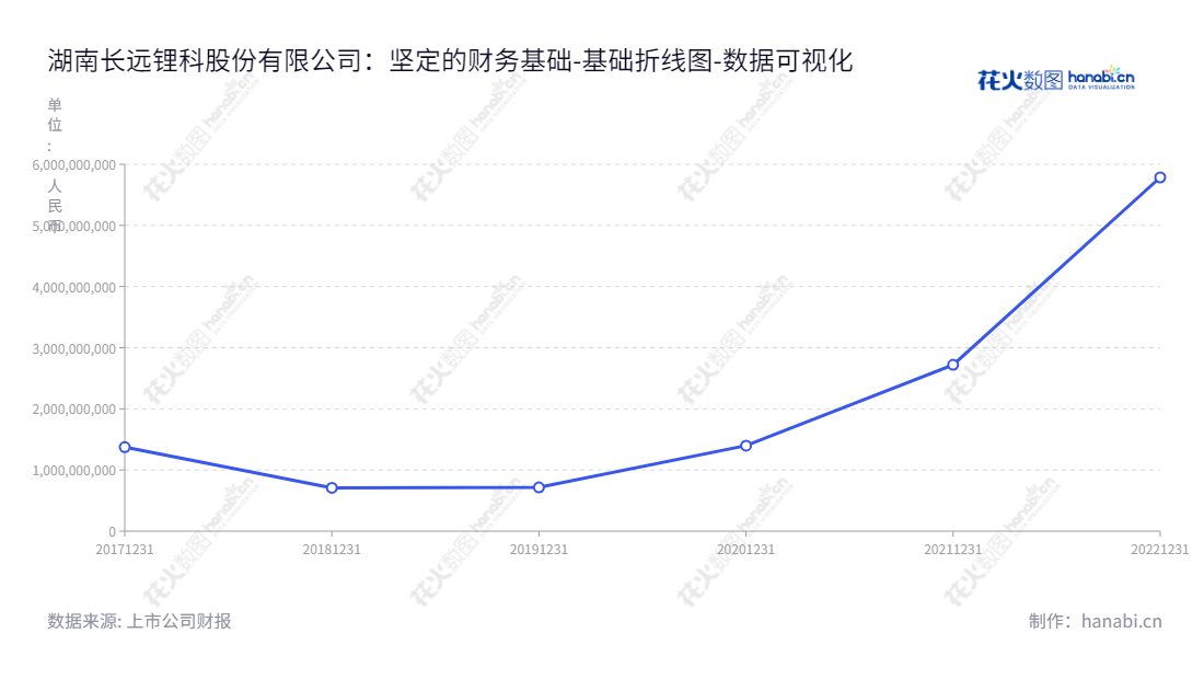 《湖南长远锂科股份有限公司:坚定的财务基础》湖南长远锂科股份有限公司(Hunan Changyuan Lico Co., Ltd.)致力于高效电池正极材料的研发、生产和销售,董事长胡柳泉,总经理张臻,拥有庞大的资源和团队。从2017年至今,公司不断努力,持续发展的财务业绩显示,公司确立了坚实的经济基础,流动负债合计在2017年的1374084.73689元不断减少至2022年的5785142325.58元,显示出公司财务状况的稳健增长和稳定性。除此之外,公司强大的领导团队,以及多年的成功经验,使得公司可以在市场上稳步发展,不断提升公司经营状况,公司也可以在今后的发展中实现更大的成功。