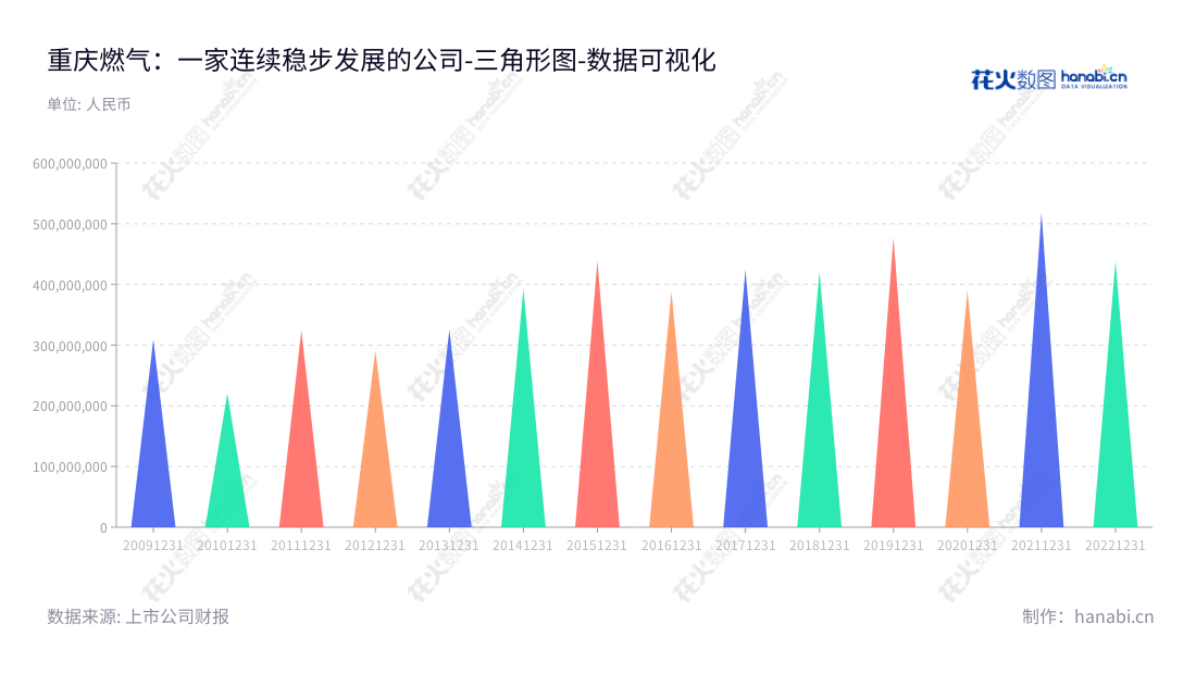 《重庆燃气:一家连续稳步发展的公司》重庆燃气集团股份有限公司(600917)是一家主营城市燃气供应以及燃气设施设备的安装服务的公司,位于重庆重庆市,董事长为王颂秋,总经理为车德臣。仔细对比该公司的营业利润报表可以看出,该公司的经营业绩持续有所增长,从2012年的290904020.91元增加到2022年的438742242.69元,可以说是连续发展了十年,同时本公司也受到国家各类政策的支持和鼓励,从而有效的推动了经营的发展和变革,经营也持续稳步的发展过程中,在未来展望的空间将会更大,前景尤其充满希望。因此可以正面的肯定该公司全体人员共同努力下,以及该公司牢记经营理念,按章办事,向着迈向现代管理经营的目标一直努力,取得成果,推动经济发展。