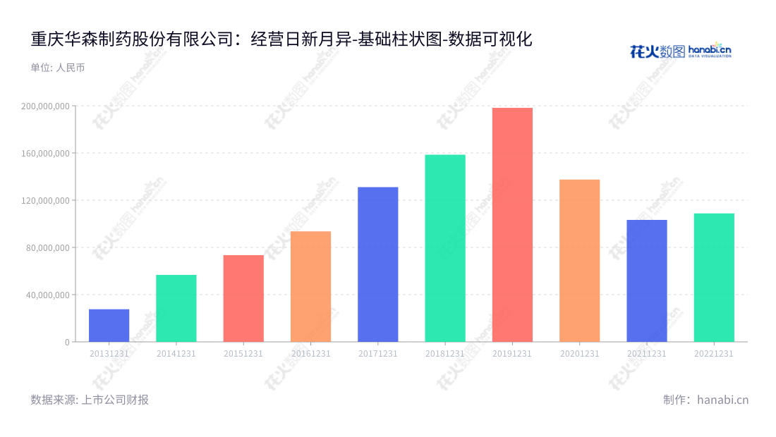 《重庆华森制药股份有限公司:经营日新月异》随着西药制造业的发展,重庆华森制药股份有限公司(002907)不断创新、发展,证明了它是一家前瞻性和迅速发展的公司。根据该公司的近几年营业利润报表可以看出,这家公司日新月异的经营状况。从2013年192,875,221.85元的营业利润开始,重庆华森制药股份有限公司迅速发展,到2014年营收增长至5,670,422,583元,到2016年就收入至9,362,850,377元,到2017年达到13,105,180,024元,继而2018年其营收达15,847,090,185元,2019年再次创下新纪录收入上涨至19,826,163,050元,由此可见这家公司正在取得显著的成就。重庆华森制药股份有限公司承担的任务艰巨,既要提供优质的中成药,也要针对客户提供一流的服务。无论是研发、生产,还是销售,这家公司都把客户维持在第一位,努力为消费者提供最佳的药品及服务。重庆华森制药股份有限公司一直坚持“客户至上”的准则,把客户放在更加重要的位置。同时,重庆华森制药股份有限公司一直致力于给客户提供更好的产品,将可持续发展的理念贯彻到每个生产环节,为消费者提供更健康的产品及服务。公司持续拓展市场,用差异化策略布局,来发展客户,并通过不断完善市场营销