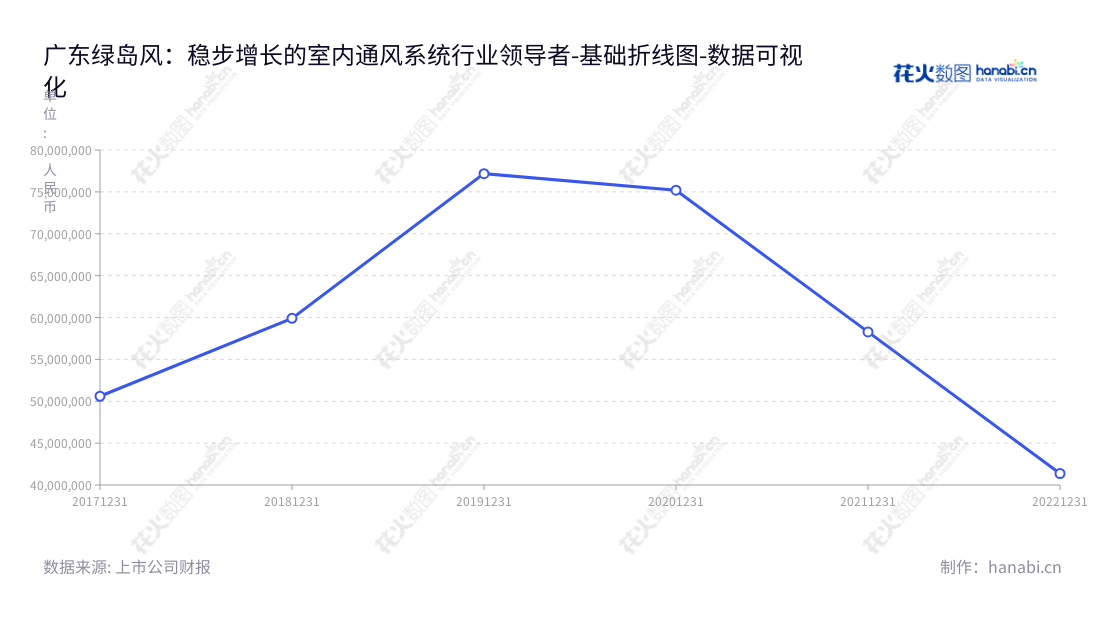 《广东绿岛风:稳步增长的室内通风系统行业领导者》广东绿岛风是一家以室内通风系统产品的设计研发、生产及销售为主营业务的公司,成立于江门市,董事长李清泉兼任总经理,其网址为www.nedfon.com 。从2017年至今的收入报表来看,广东绿岛风的营业利润在不断增长,2019年营业利润达77176150.85元;2020年到2022年连续三年,广东绿岛风的营业利润超过7500万元,翻越里程碑级别,展示出其在室内通风系统行业内一贯稳健的发展态势。广东绿岛风所提供的系统产品也在不断更新,提高质量。2011年,绿岛风推出了一系列室内抽、吸送风设备,满足了不同客户的要求,更加节能;2015年,又推出了一系列智能化室内通风设备,实现了功能增强,从而给用户提供更多便利。结合广东绿岛风一直以来秉持的绿色环保精神,这些智能化设备旨在帮助客户实现空气净化,从而保护环境,同时为用户带来更多的舒适、安全及健康。通过多年的艰苦努力,广东绿岛风已经逐渐成为室内通风设备行业的领导者,其营业利润越来越高,技术和产品也不断地进步,帮助绿岛风实现了稳步增长。在未来,绿岛风将继续努力,高质量地为客户提供产