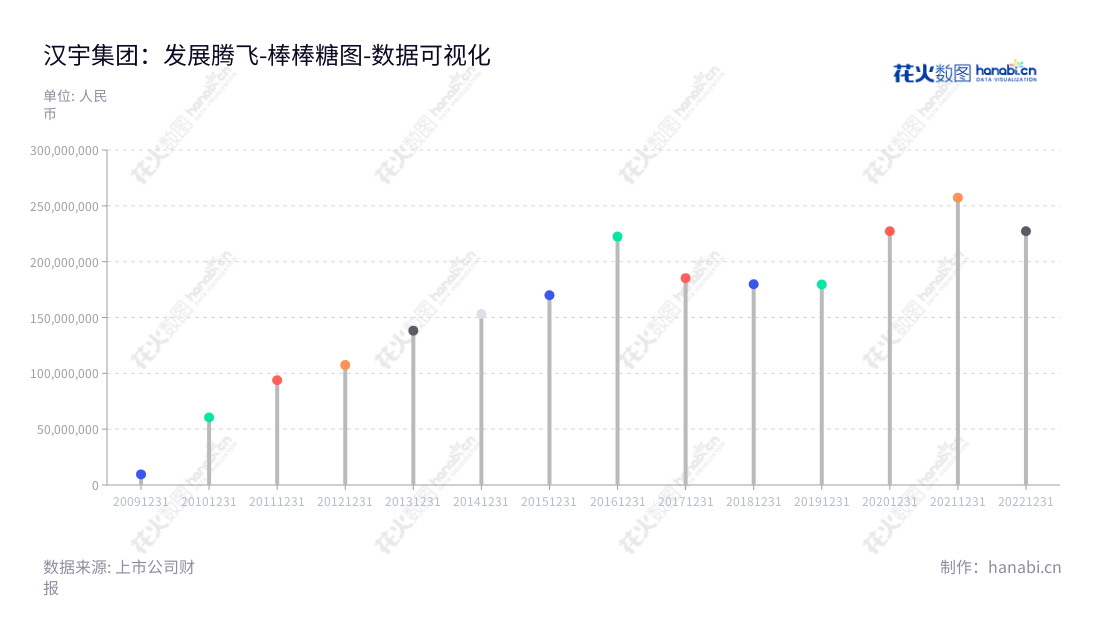 《汉宇集团:发展腾飞》汉宇集团股份有限公司(Hanyu Group Joint-Stock Co., Ltd.)是一家致力于高效节能家用电器排水泵研发、生产和销售的公司,位于中国广东江门市,董事长为石华山,总经理为石华山。追溯到汉宇集团股份有限公司 2012 年以来的利润总额,随着公司营销和组织管理有效性的提升,利润总额持续增长,从2012年的10.7亿,增长到2022年的22.7亿,一路飙升,显著凸显出汉宇集团在近几年的管理发展优势,展示出良好的管理水平。公司的营销在近几年也有了明显的增长,围绕高效节能家用电器排水泵的研发、生产和销售,汉宇集团已经开发出一整套较为完备的体系,为公司营销开拓市场提供了强有力的保障。此外,汉宇集团也重点发展国际业务,逐步将管理体系开拓到世界各地,强化公司的国际市场竞争力,显著提升汉宇集团的商业地位。从2013年到2022年,汉宇集团的经营效果令人满意,充分展示出汉宇集团在管理和发展的优秀水平,有著一系列的显著成绩。今天,汉宇集团正处在快速发展阶段,希望未来几年,汉宇集团能够继续发展壮大,发挥更大作用,助力国家事业的发展。