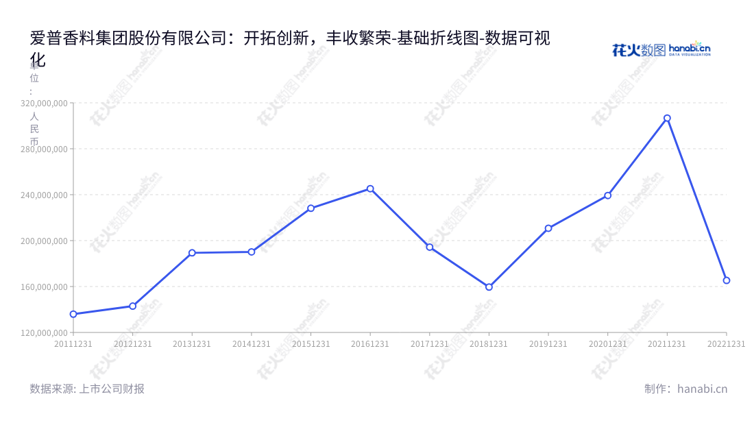 《爱普香料集团股份有限公司:开拓创新,丰收繁荣》 爱普香料集团股份有限公司(Apple Flavor and Fragrance Group Co., Ltd.)是一家位于上海的上市公司,由董事长魏中浩及其管理者魏中浩经营管理,主营香料、香精的研发、生产和销售以及食品配料经营,拥有先进的管理理念和经验,以及大胆创新的发展思路。从2012年至2020年,爱普香料集团股份有限公司的利润总额从14亿元急剧增长至165.3亿元,说明公司的运营情况发生了质的飞跃。公司在多个市场之间调整了业务结构,抓住全球市场的机遇,不断开拓新业务,扩大了其业务范围,以致发挥了较强的增长引擎。与此同时,爱普香料集团股份有限公司坚持精益求精,从研发到销售都采用了科学的管理方式,有效的利用财务资源,充分降低了企业成本,实现了更高效的现金流收支,保证了企业收入的可持续增长。综上所述,爱普香料集团股份有限公司在香料、香精行业率先开发,开拓创新,严格控制企业成本,不断抓住机遇,丰收繁荣,令投资者收益出众。