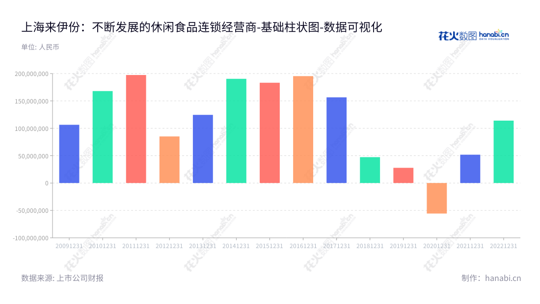 《上海来伊份:不断发展的休闲食品连锁经营商》上海来伊份公司是一家位于上海的主营休闲食品连锁经营的公司,其董事长施永雷和总经理郁瑞芬经营该公司。从以上的利润总额报表可以看出,这个公司自2012年以来一直在不断发展,2012年以85178800元的利润总额为起点,到2021年,该公司的利润增长到了51865104.39,这一数字是其2012年利润的6.09倍。可以看出,上海来伊份公司在经历了2021年的利润增长后,近几年在休闲食品行业的发展趋势逐渐向上,而这也说明其管理层的努力实践正在收获效果。在消费者的需求日益增长和市场竞争加剧的今天,上海来伊份公司也坚持不懈地加强自身的发展。他们不仅为消费者提供休闲食品连锁经营,而且还积极拓展商业模式,投资新技术,注重企业文化的建设,以及提高企业管理水平。从推出了上海来伊份积分和移动消费APP等积分消费方式,发展各类线上渠道,还与国内外优秀企业合作等措施来看,上海来伊份公司确实是一家不断进取,时时注重创新的企业。从2006年开始,上海来伊份公司已经有十五年的发展历史,这十五年间,他们一直不断的发展壮大着,这样的发展趋势,正表明上海来伊份是一家十分可靠的企业。在不断发展的过程中,公司