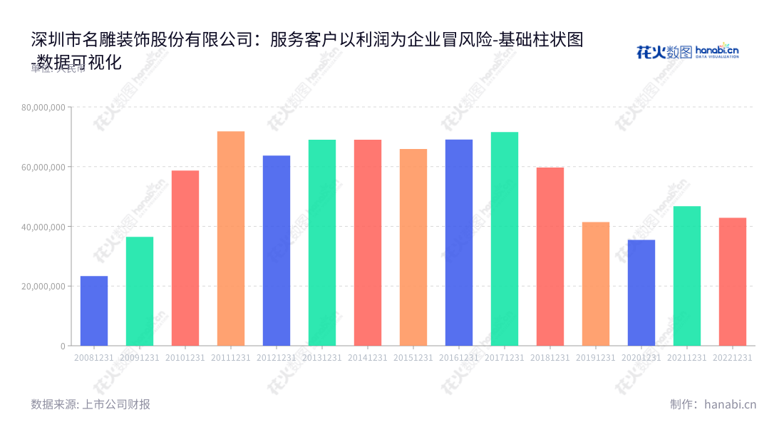 《深圳市名雕装饰股份有限公司:服务客户以利润为企业冒风险》深圳市名雕装饰股份有限公司(Shenzhen Mingdiao Decoration Co., Ltd.)致力于为中高端客户提供原创设计、工程施工、木制品定制、装饰材料选购等家庭装饰综合服务,可谓一家融合创新设计、精湛工艺以及优质服务的国际品牌设计公司。从报表中可以看出,深圳名雕近几年的经营情况一直处于佳状态,其利润总额连续多年大幅度上升。在经济不景气的这段时期,名雕仍然把握时机,领导者和团队都在冒风险的同时,更加专注于服务客户;将专业的服务提供给客户,从而获得意外收益,实现了价值及经济效益的结合。在抿于环境日益恶劣的背景下,深圳市名雕装饰股份有限公司(Shenzhen Mingdiao Decoration Co., Ltd.)为企业发展作出的贡献不可小觑,力求向客户提供更好的服务,以利润为企业冒险为领航𣗤,搭建让客户满意的家装平台,将股票002830更好地实现价值。