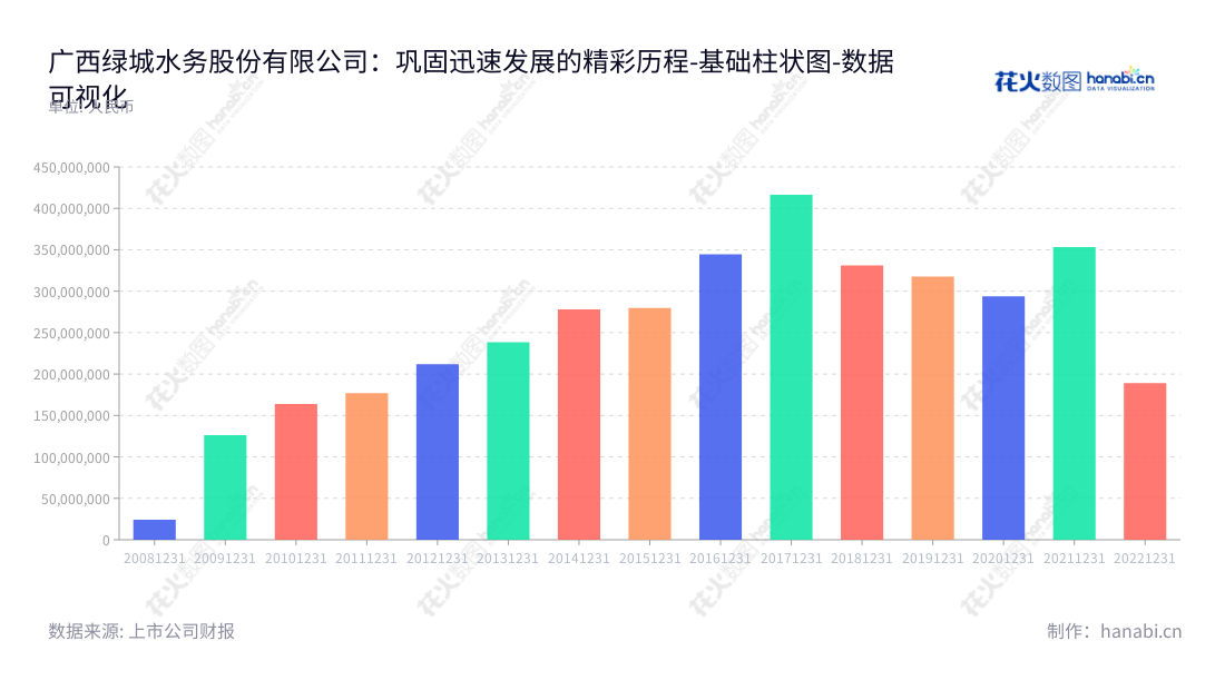 《广西绿城水务股份有限公司:巩固迅速发展的精彩历程》广西绿城水务股份有限公司(Guangxi Nanning Waterworks Co., Ltd.)位于南宁市,是一家专业从事自来水生产供应和污水处理业务的上市企业,由黄东海先生担任董事长,蒋俊海先生出任总经理,旨在为全市的居民提供高质量、高性价比的便捷服务,在当地市场备受追捧。近年来,绿城水务在全市范围内巩固了其地位,并快速发展经营,从2012年到2022年,利润总额从21.19亿至18.91亿元不等,实现了两位数的增长,在扩大业务量的同时,并没有损害公司利润的关键因素,收入稳定增长,客户对其服务的满意度也不断提高。此外,绿城水务也积极投资技术和设施升级,以扩大其竞争力和服务质量,一方面加快服务进度,另一方面还提高服务质量,以满足各社区和企业客户的需要。综上所述,绿城水务具有强大的发展潜力,由于其出色的表现,赢得了市场信任,大大提高了其行业相对位置,实现发展目标,充分体现出其作为一家上市水务企业所应具备的实力和能力。
